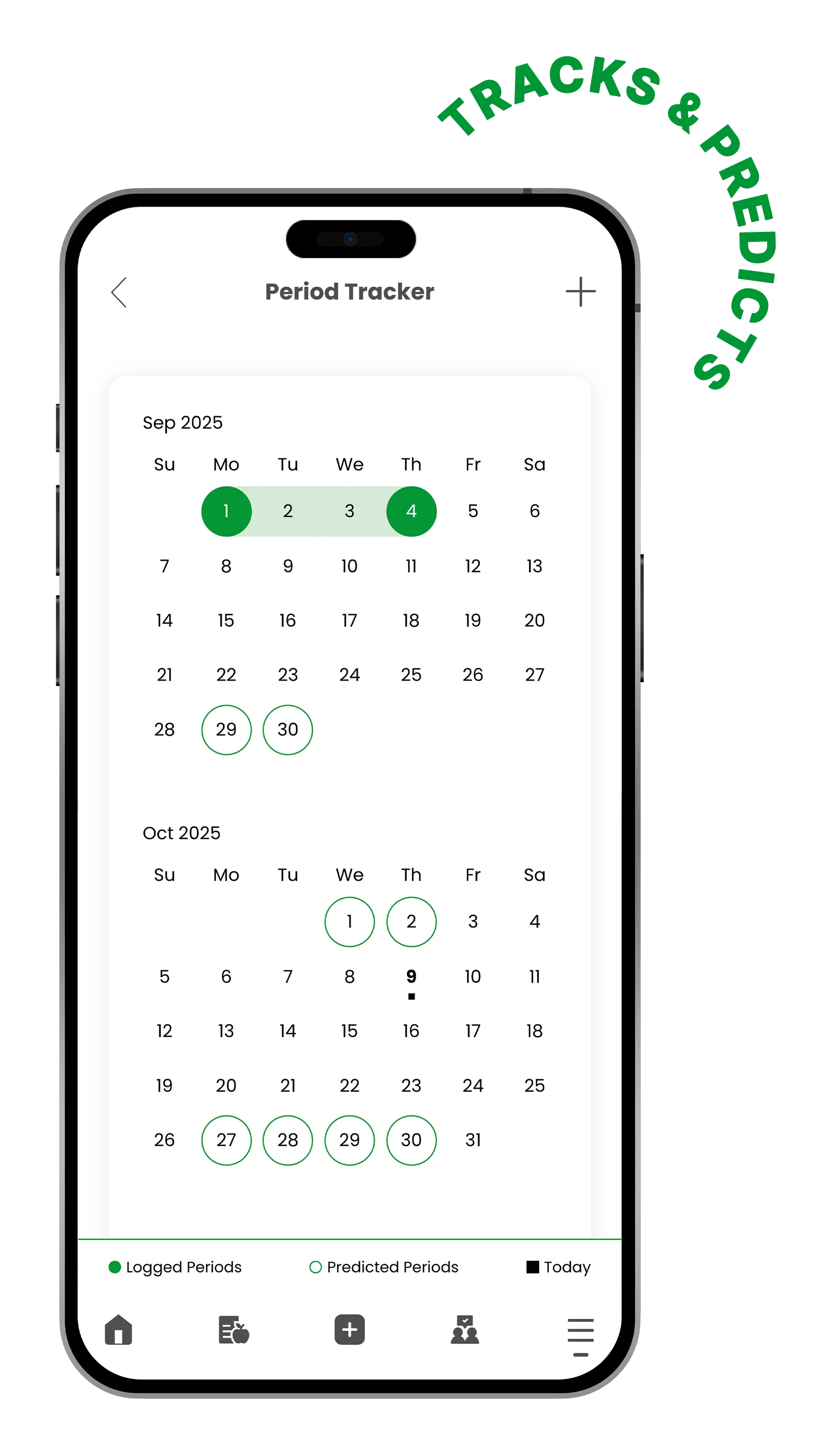 - Period tracker reminds you about upcoming periods